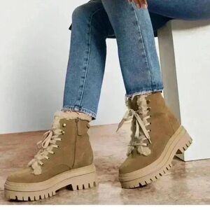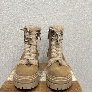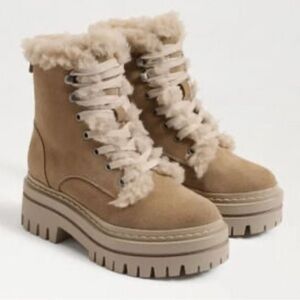 Sam Edelman Kyler Lace Up Suede Cozy Combat Boots Size 8