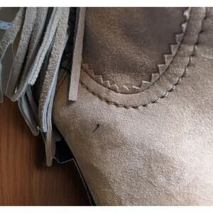 Sam Edelman LOUIE Taupe Suede Fringed Western Style Ankle Boots 7.5 Boho Preppy