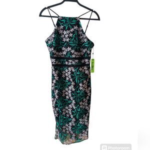 Sam Edelman Lace Embroidered Green Floral Sheath Dress