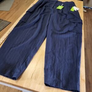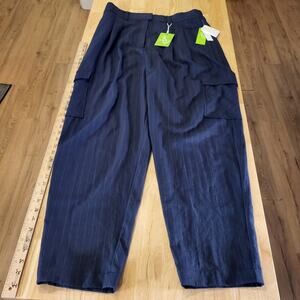 Sam Edelman Laila Pants Pinstripe Elastic Waist Pockets Viscos Nylon Size 16