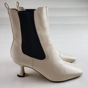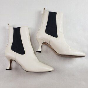 Sam Edelman Lani Chelsea Boot Womens 8 Cream Black Leather Pull On Ankle Heeled