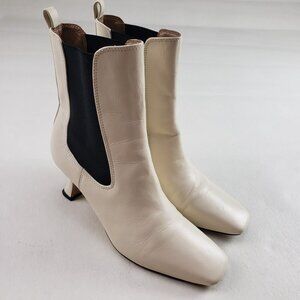 Sam Edelman Lani Chelsea Boot Womens 8 Cream Black Leather Pull On Ankle Heeled