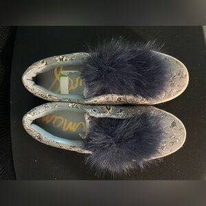 Sam Edelman Laya Blue Platform Pom Pom Floral Sneakers Size 8