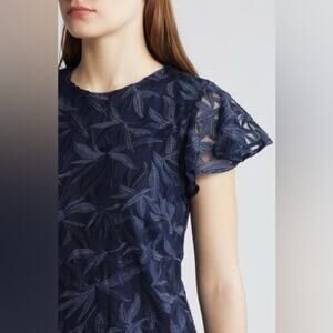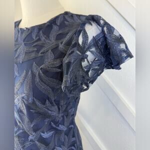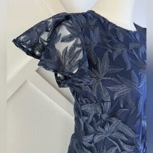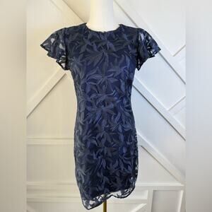 Sam Edelman Leafy Embroidered Lace Flutter Sleeve Navy Sheath Dress Size 0