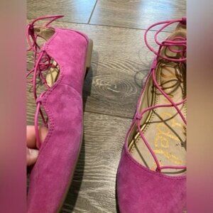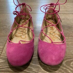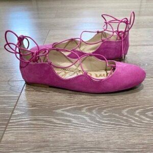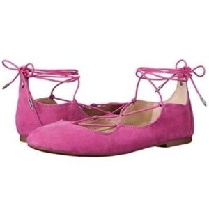 Sam Edelman Leather Balletcore Lace Up Boho Pink Colorful Beachy Flats