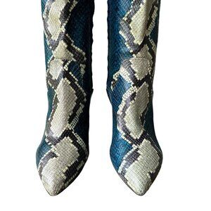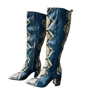 Sam Edelman Leather Boots Hai Snakeskin Peacock Blue Knee High Women's size 6.5 M EUC
