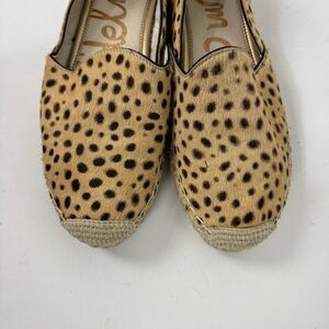 Sam Edelman Leather Calf Hair Hide Slip On Espadrille Flats Animal Cheetah Print
