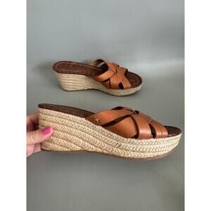Sam Edelman Leather Ramona Espadrille Wedge Sandal Womens 7 Slip On 3 inch Heel