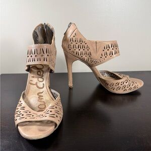 Step out in style with these elegant Sam Edelman heels. Featuring a chic cutout design, these tan shoes are perfect for any occasion.