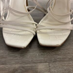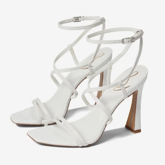 Sam Edelman | Lela Bright White Ankle Strap Squared Open Toe Heeled Sandals
