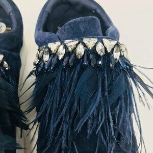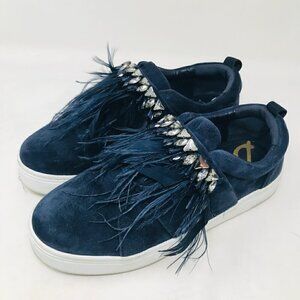 Sam Edelman Lelani navy blue suede feather and crystal rhinestone embellishment sneakers