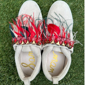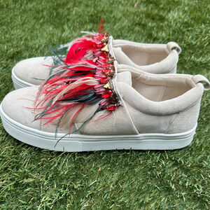 Sam Edelman Lelani Suede Embellished Gemstone Feather Boho Western Sneakers 9.5