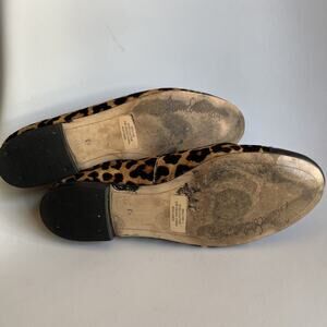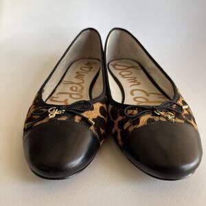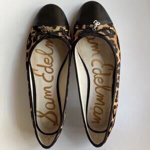 Sam Edelman Leopard Print Calf Hair Ballet Flats Women's 8.5 Bow Charm Detail