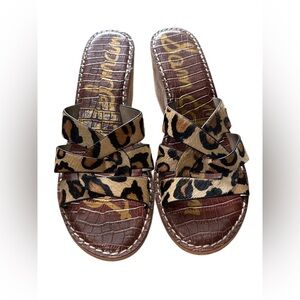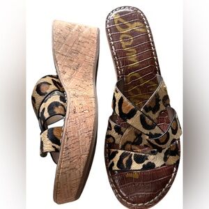 Sam Edelman Leopard Print on Dyed Horse Hair Wedges with Wood Like Detail