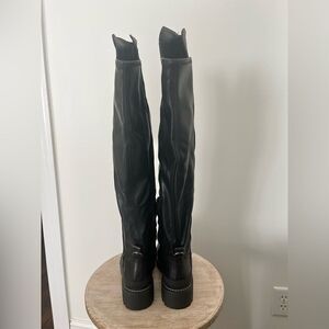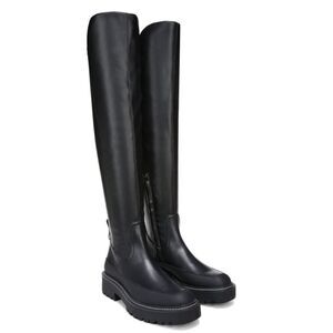 Sam Edelman Lerue Over The Knee Stretch Side Zip Lug Combat Boots Black NWOB