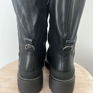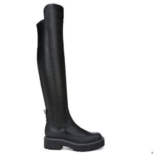 Sam Edelman Lerue Over The Knee Stretch Side Zip Lug Combat Boots Black NWOB