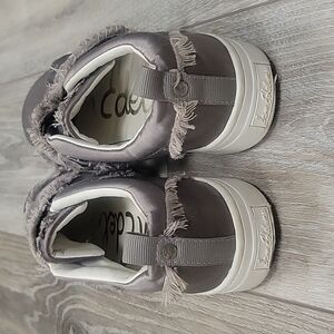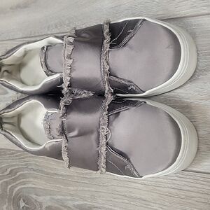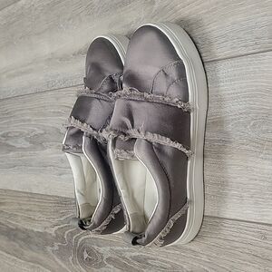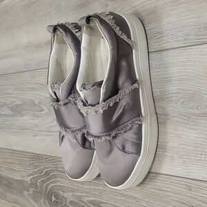 Sam Edelman Levine Frayed Gray Satin Platform Slip-On Sneakers Size 7 1/2