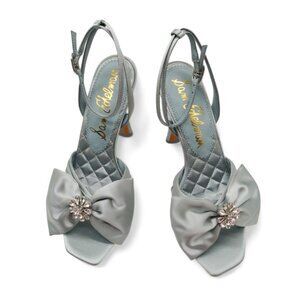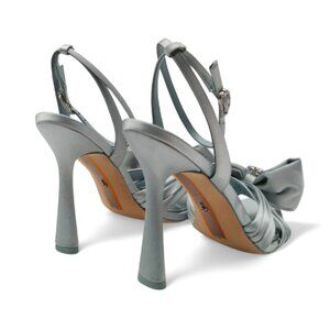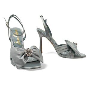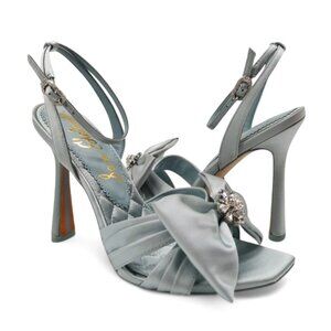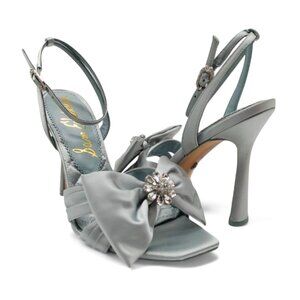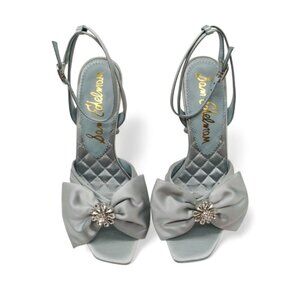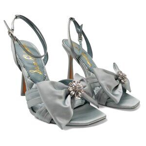 Sam Edelman Lexi Size 9 Cape Blue Satin Embellished Bow Ankle Strap Dress Sandal