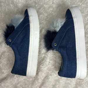 Sam Edelman Leya Denim Pompom Sneaker Size 6.5