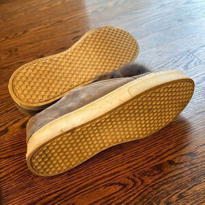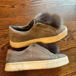 Sam Edelman Leya gray suede faux fur puff ball pull on sneakers. Size 8.5.