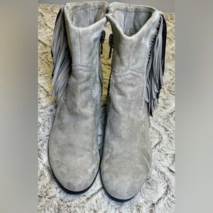 Sam Edelman Light Gray Boho Indie Western Fringe Suede Ankle Boots Size 7