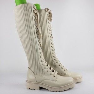 Sam Edelman Lila Knee High Boots Women's Size 6.5 M Off White Stretch Ribbed