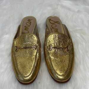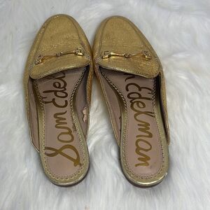 Sam Edelman Linnie Amber Gold Leather Bit Mules Sz 6