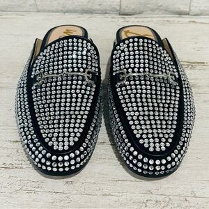 Sam Edelman Linnie Black Glitz Slip On Almond Toe Flat Crystal Horsebit Mules 6.5