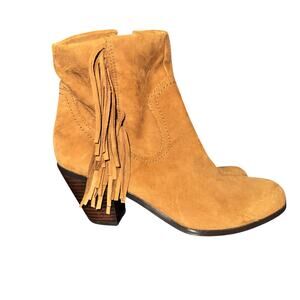 Sam Edelman Louie Ankle Boots Women's Sz 9.5 M Brown Suede Fringe Ankle Zip NWOB