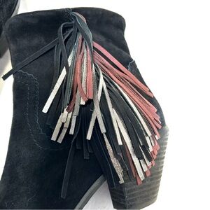 Sam Edelman Louie Ankle Cowgirl Fringe Leather Suede Black Purple Silver Sz 8.5