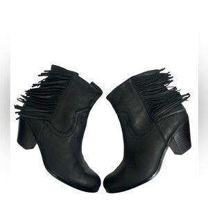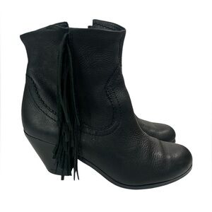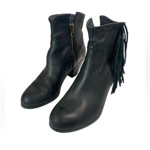 Sam Edelman Louie Black Leather Fringe Bootie Size 8