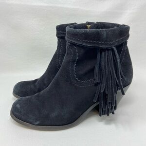Sam Edelman Louie Black Suede Leather Fringe Ankle Zip Up Boots.