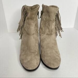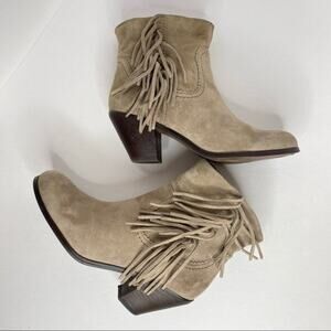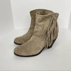 Sam Edelman Louie Fringe Bootie Gray Suede Western Cowboy Cowgirl Heeled Ankle
