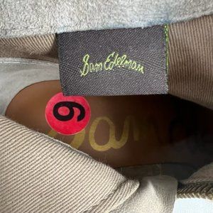 Sam Edelman women’s Louie taupe suede fringe-trimmed western ankle booties, size 6