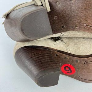 Sam Edelman Louie Taupe Fringe Suede Western Ankle Boot 6