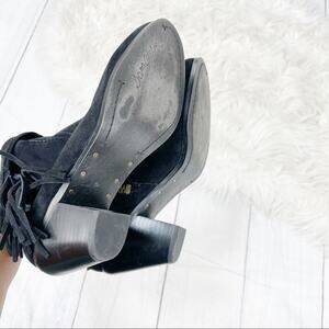 Sam Edelman Louie Women's Black Fringe Trim Suede Leather Ankle Boots Size 7.5