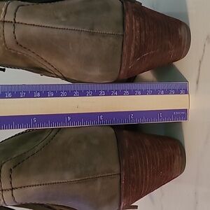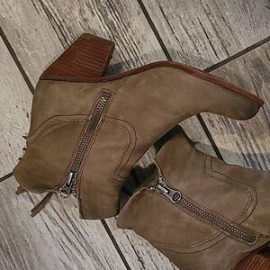 Sam Edelman Louis Louie Taupe Green Suede Leather Fringe Ankle Boots 10 Western