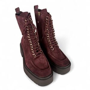 Sam Edelman Lovrin Burgundy Suede Platform Combat Boots 7 NWT