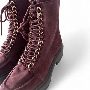 Sam Edelman Lovrin Burgundy Suede Platform Combat Boots