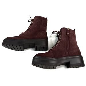 Sam Edelman Lovrin Platform Combat Boots Spiced Pecan Suede Women's 7M Zip New