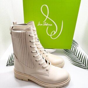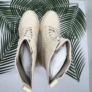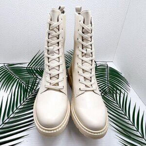 Sam Edelman Lydell Ivory Leather Combat Boots Lug Sole Size 9M NWB Chic Fall
