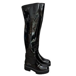 Sam Edelman Lydia Black Patent Shiny Chunky Lug Sole Over The Knee Boot Size 6.5