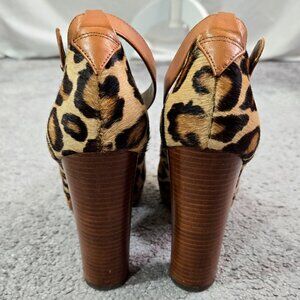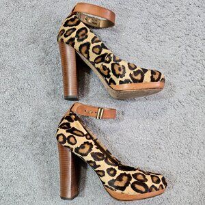 Sam Edelman Lyla Leopard Print Leather Calf Hair Platform Pumps Ankle Strap