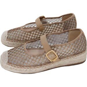Sam Edelman Mackie Mary Jane Espadrille Flats Brushed Gold Tan Women's US 7M
