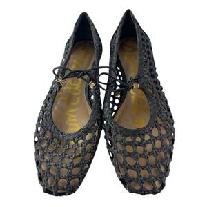 Sam Edelman Marcie Women's Black Woven Faux Raffia Slip On Ballet Flats Size 6.5