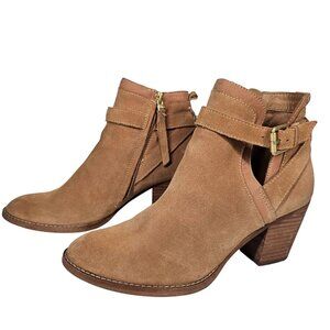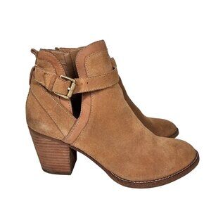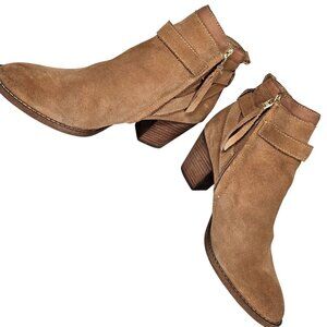 Tags: Sam Edelman boots, tan suede boots, ankle boots women, leather upper boots, Maurine boots, block heel boots, size 9 boots, side zipper boots, buckle strap boots, stylish boots women, suede ankle boots, professional boots, Sam Edelman Maurine