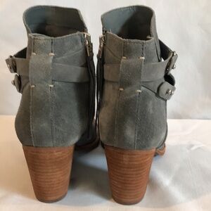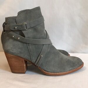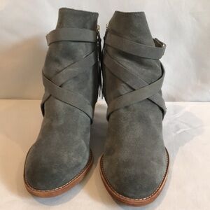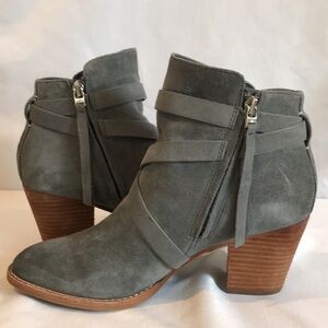 Sam Edelman Merton gray suede strappy zip chunky block heel ankle boots cowgirl