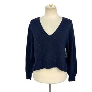 Sam Edelman Metallic Blue Lurex V Neck Crop Sweater Size 14 NWOT