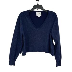 Sam Edelman Metallic Blue Lurex V Neck Crop Sweater Size 14; From Nordstrom