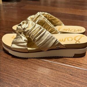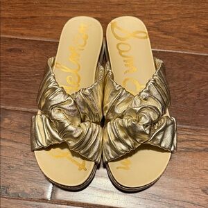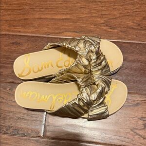 Sam Edelman Metallic Gold Ruched Slide Sandals